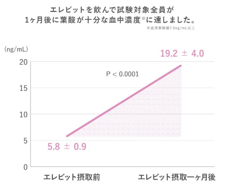 エレビットを飲んだ時の血中の葉酸濃度の変化