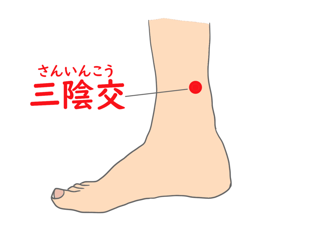■三陰交(さんいんこう):内くるぶしの上、指4本分